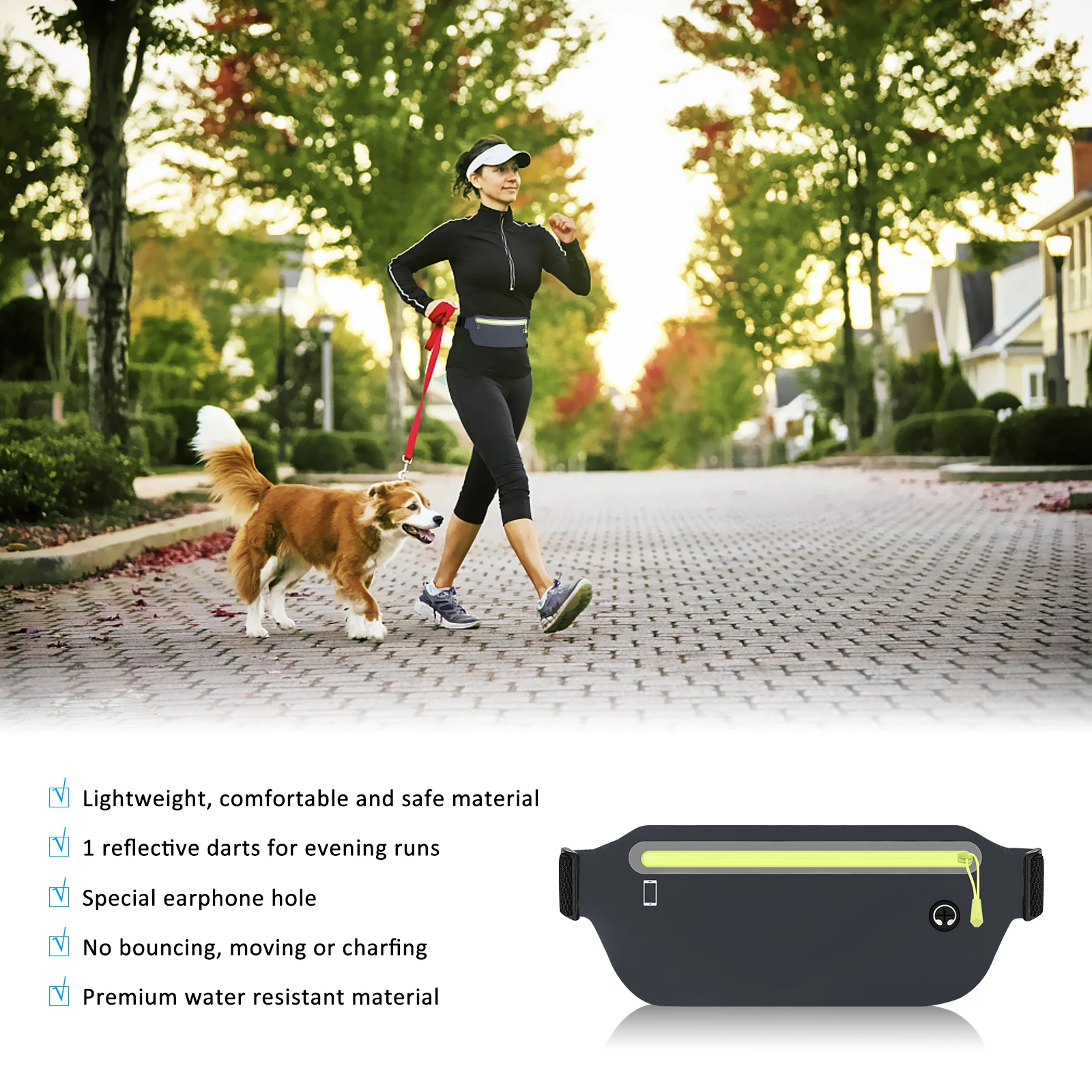 Reflective Tape :The reflective tape on this waist bag ensures that you're visible to other people, even in low-light conditions.
